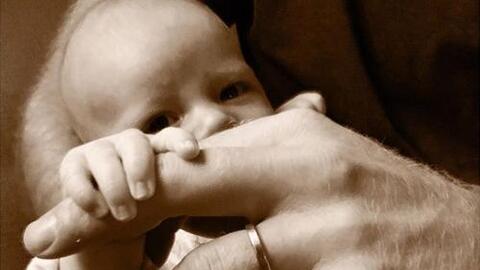En la imagen en tono sepia se ve al pequeño recostado en el regazo del príncipe, tomando con su mano el dedo de su padre. La foto, que ya tiene casi un millón de likes, está acompañada del mensaje: «Deseando un primer Día del Padre muy especial para el duque de Sussex».